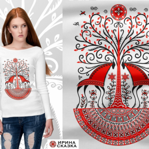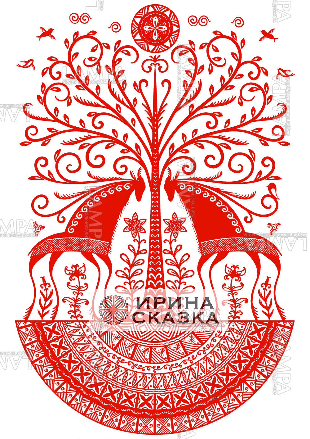 мезенская роспись, мезень, тату, русский орнамент, узор, красный, олень, дерево, сказочный, мифический, фольклорный, женский, оберег, солнце, печать на футболке