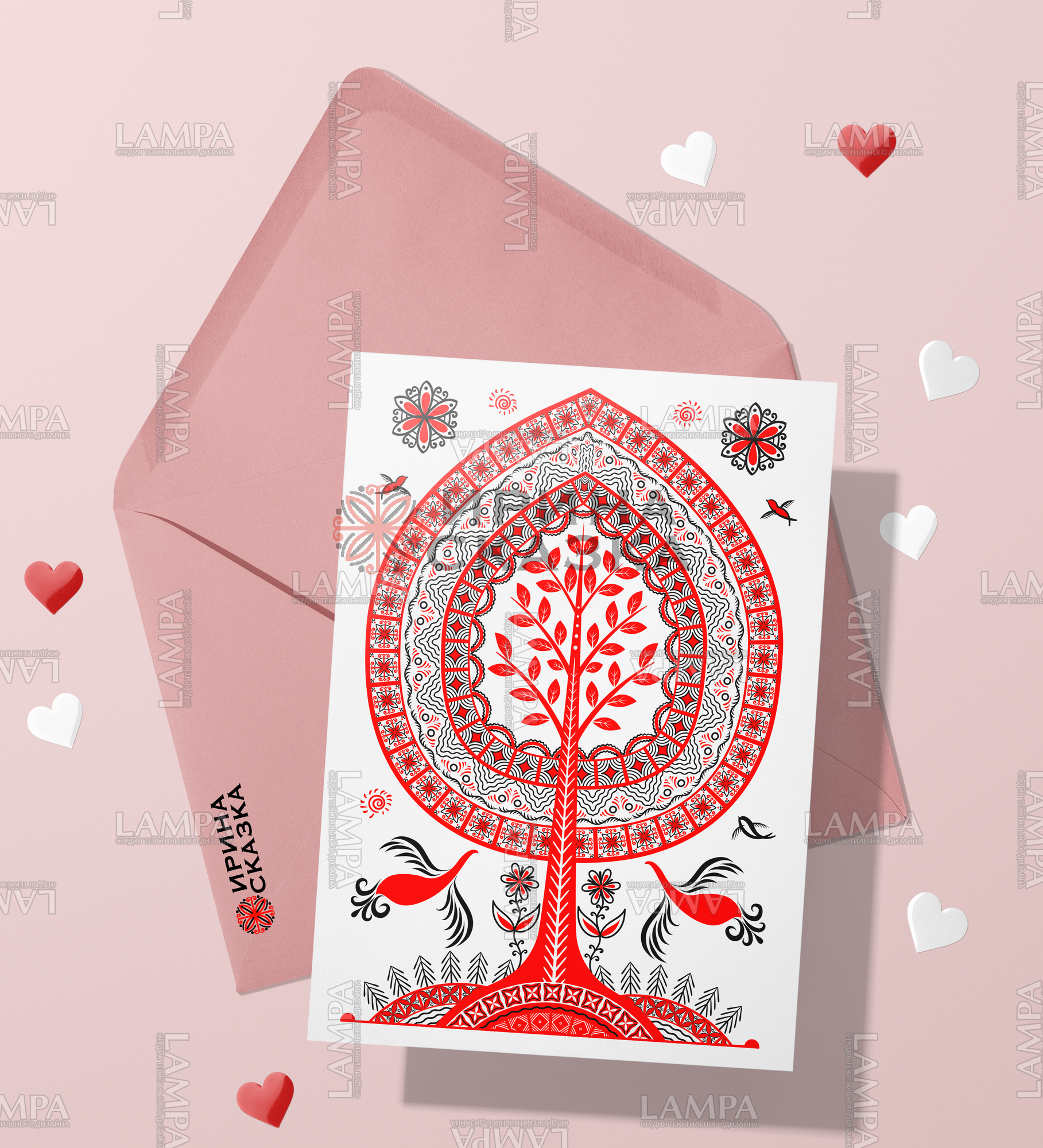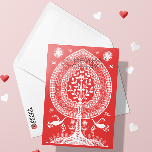 ДЕРЕВО И ПТИЦЫ В СТИЛЕ МЕЗЕНСКОЙ РОСПИСИ.