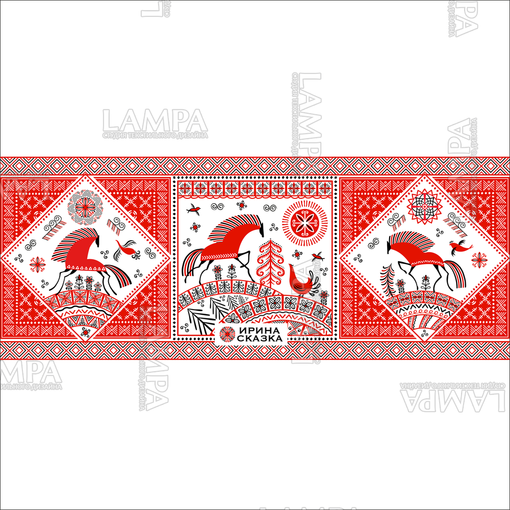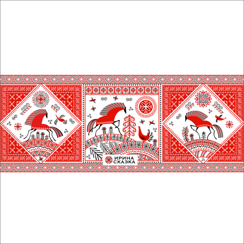 Центральный образ: стилизованное изображение красного коня — символа солнца, плодородия и жизненной энергии