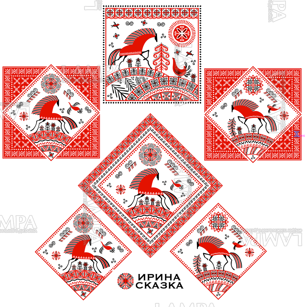 Набор иллюстраций в стиле мезенской росписи «КРАСНЫЙ КОНЬ 2026»