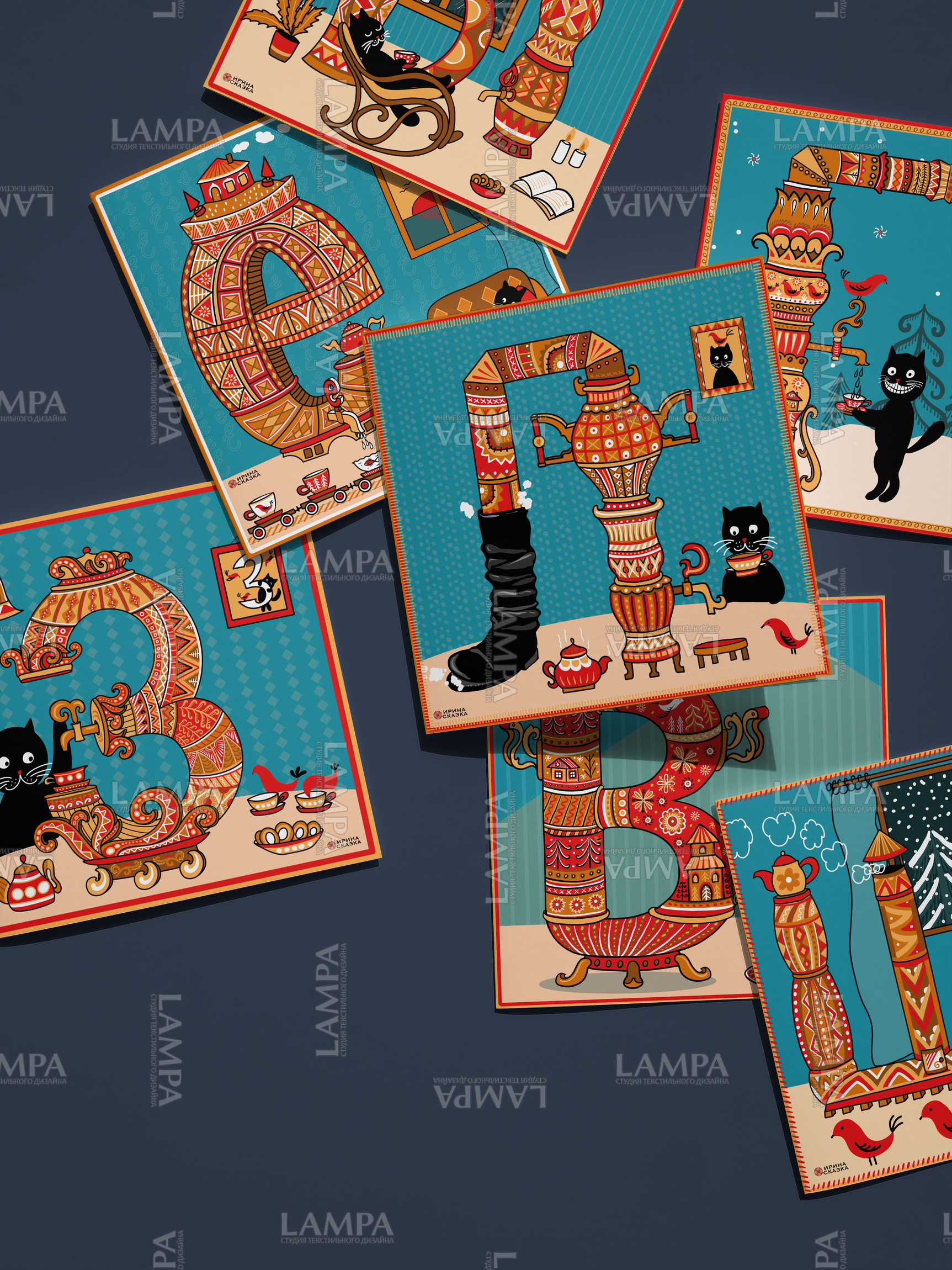 САМОВАРНЫЕ БУКВЫ. ИСТОРИИ С КОТОМ. Набор иллюстраций.