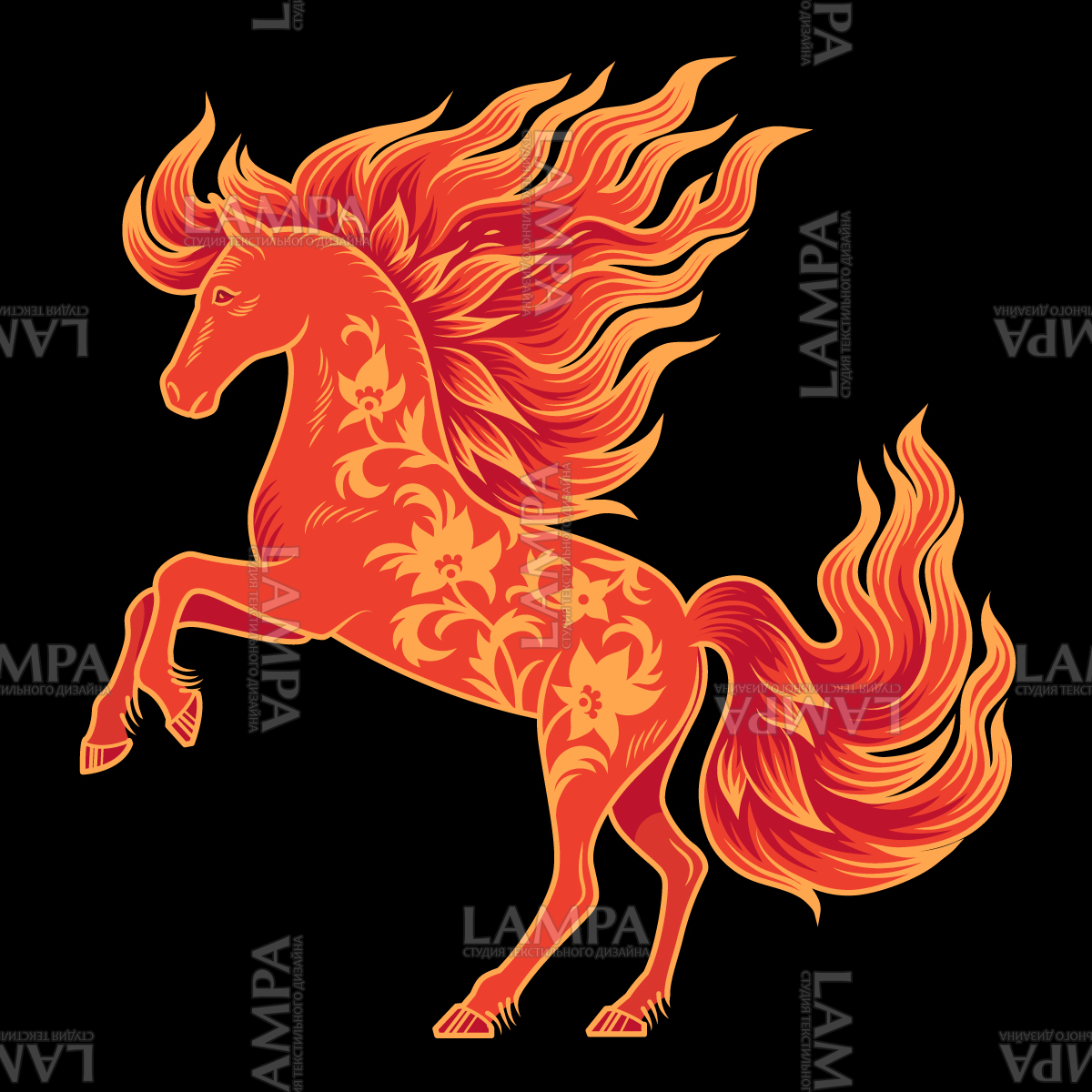 Китайский новый год, лошадь, конь, красный конь, огненный конь, для футболки