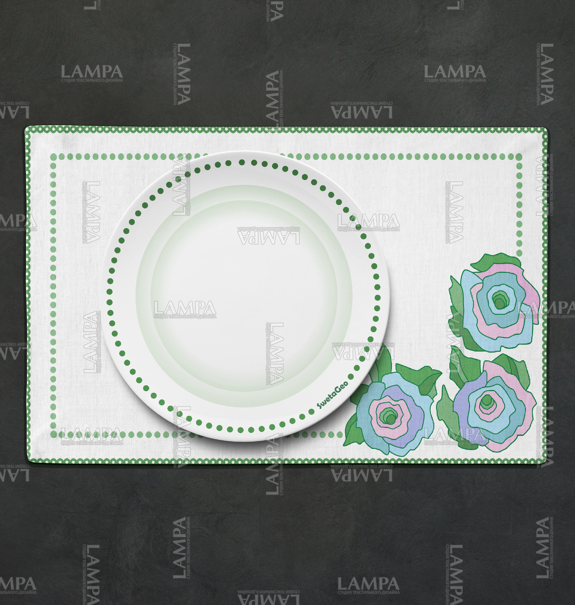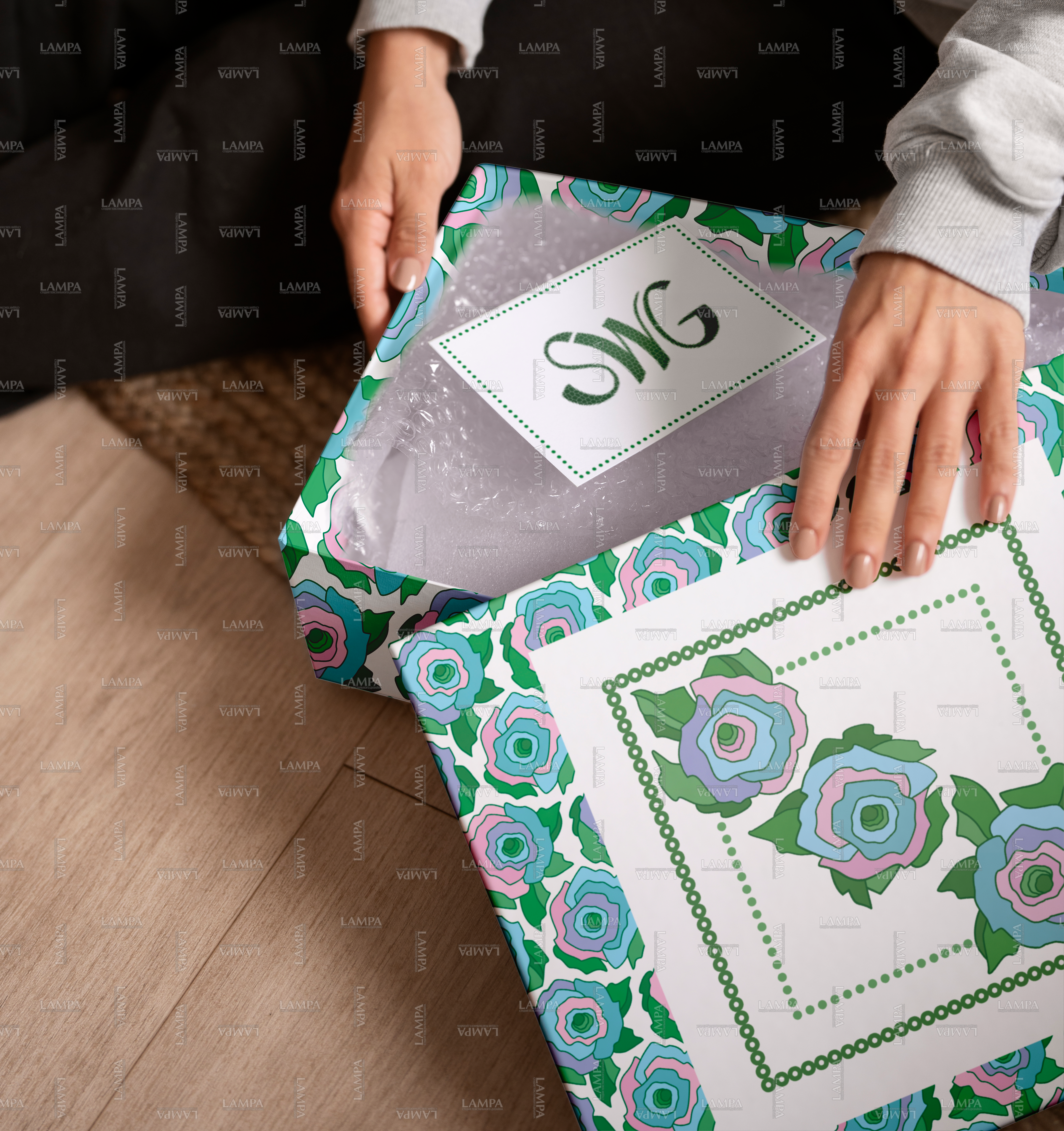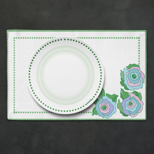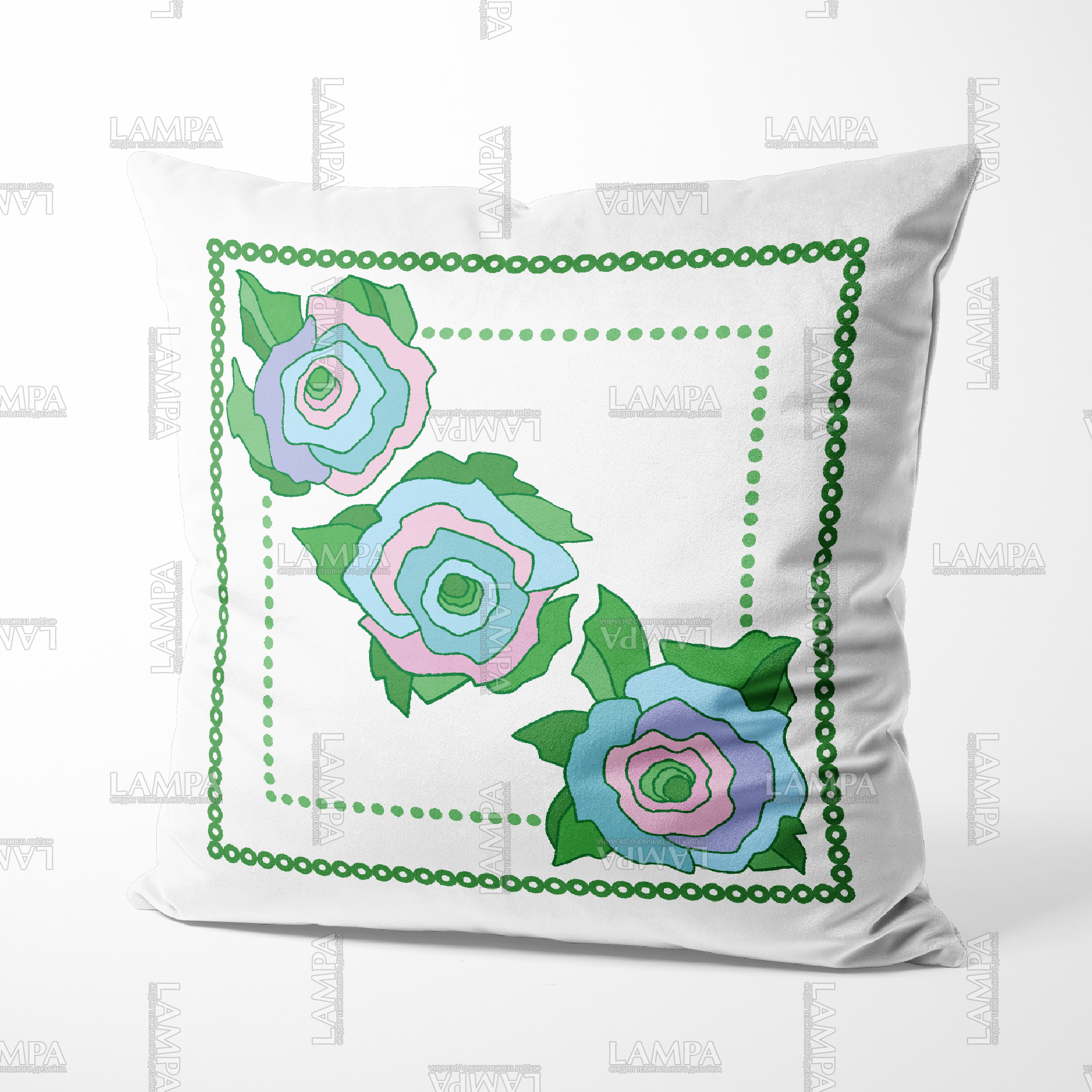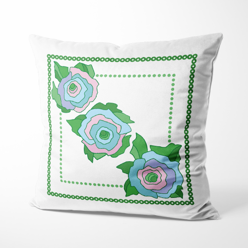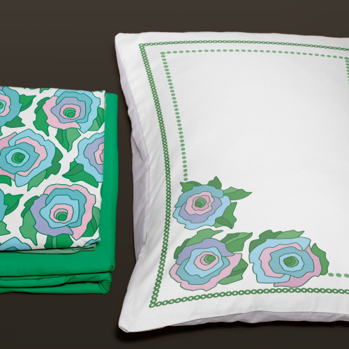 розы, цветочный, наволочка, плейсмат, яркий, аппликация, зелёный, голубой, розовый, упаковка, коробка