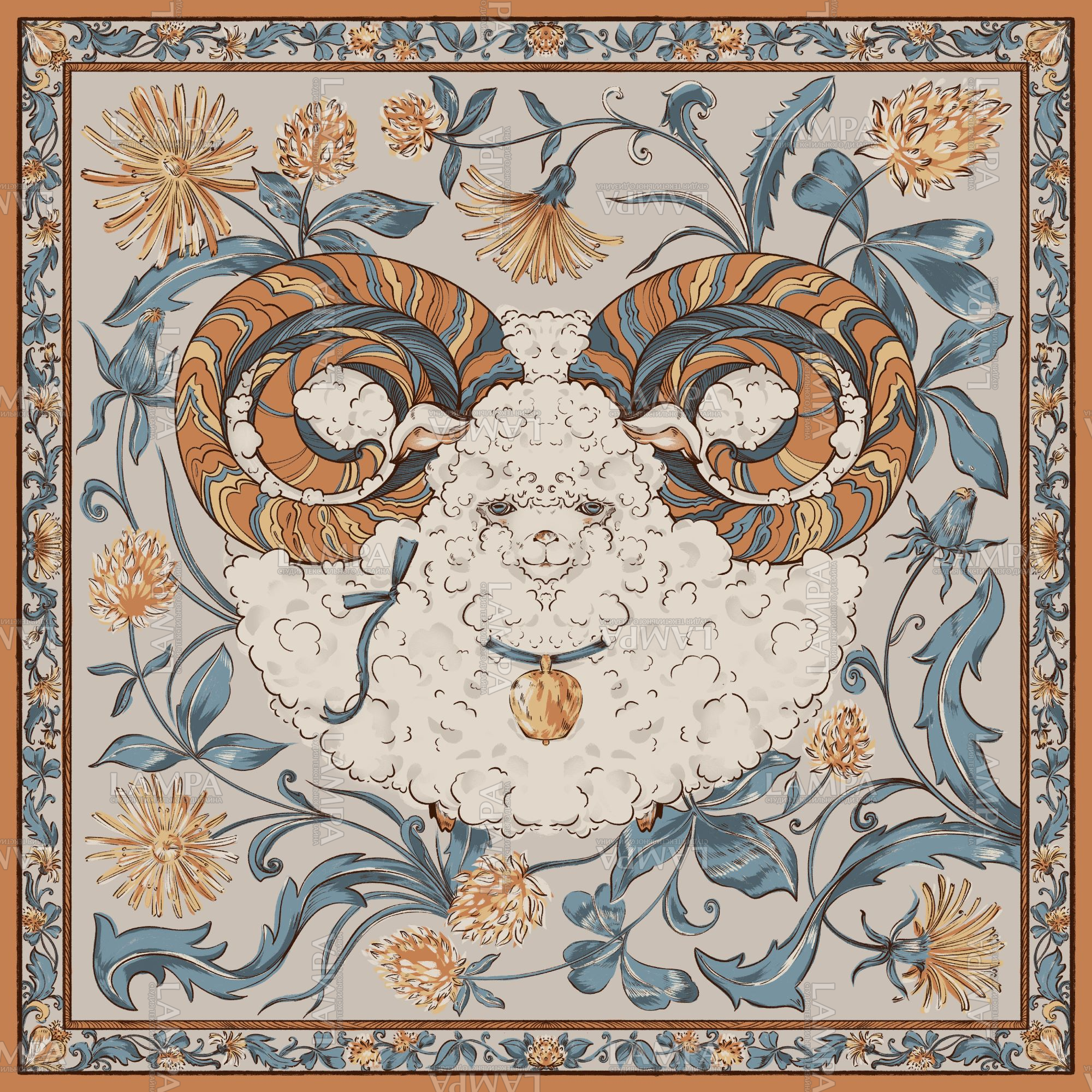 ботаника, овца, овечка, графика, баран, спокойный, детальный, весна, новый год, элегантный, год овцы, весенний, пляж, лето, одуванчик, вензель, клевер, анималистика, винтаж, ретро, лента, ленточка, синий, оранжевый, бежевый, платок, принт, плейсмент, для посуды, интерьер, шелк, русский, русский стиль, набойка, цветочный, цветок