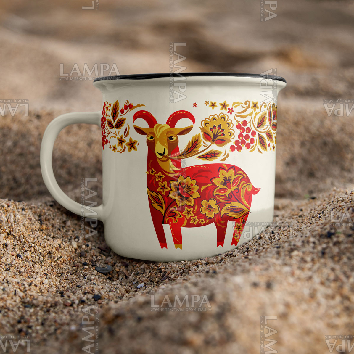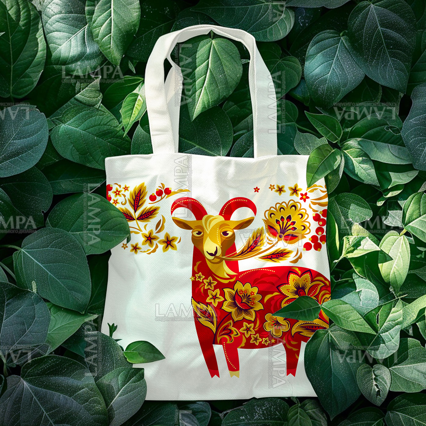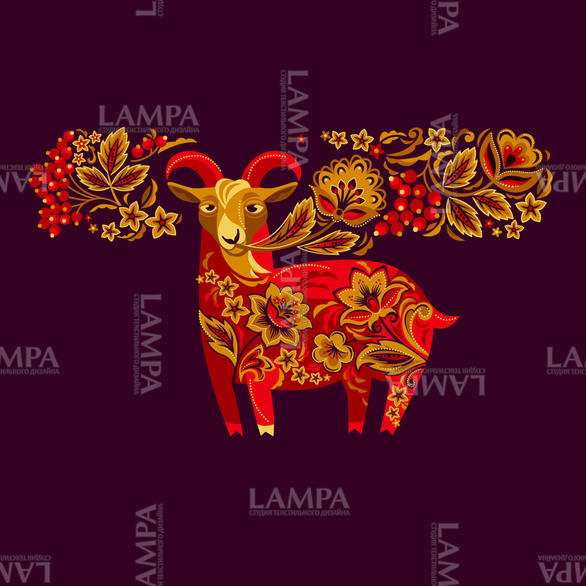 русский орнамент, русский узор, хохлома, сказка, коза, козлик, козочка, символ 2027, золото, цветы, красный, принт для футболки, принт для одежды, славянский фольклор, традиции, русская роспись, русский стиль, год козы, шутка, юмор