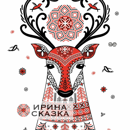 ОЛЕНИ И ДЕРЕВО ЖИЗНИ. МЕЗЕНСКАЯ РОСПИСЬ.