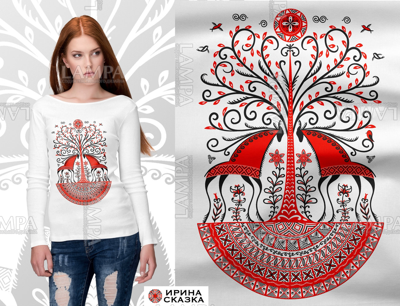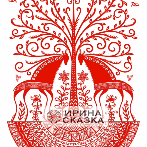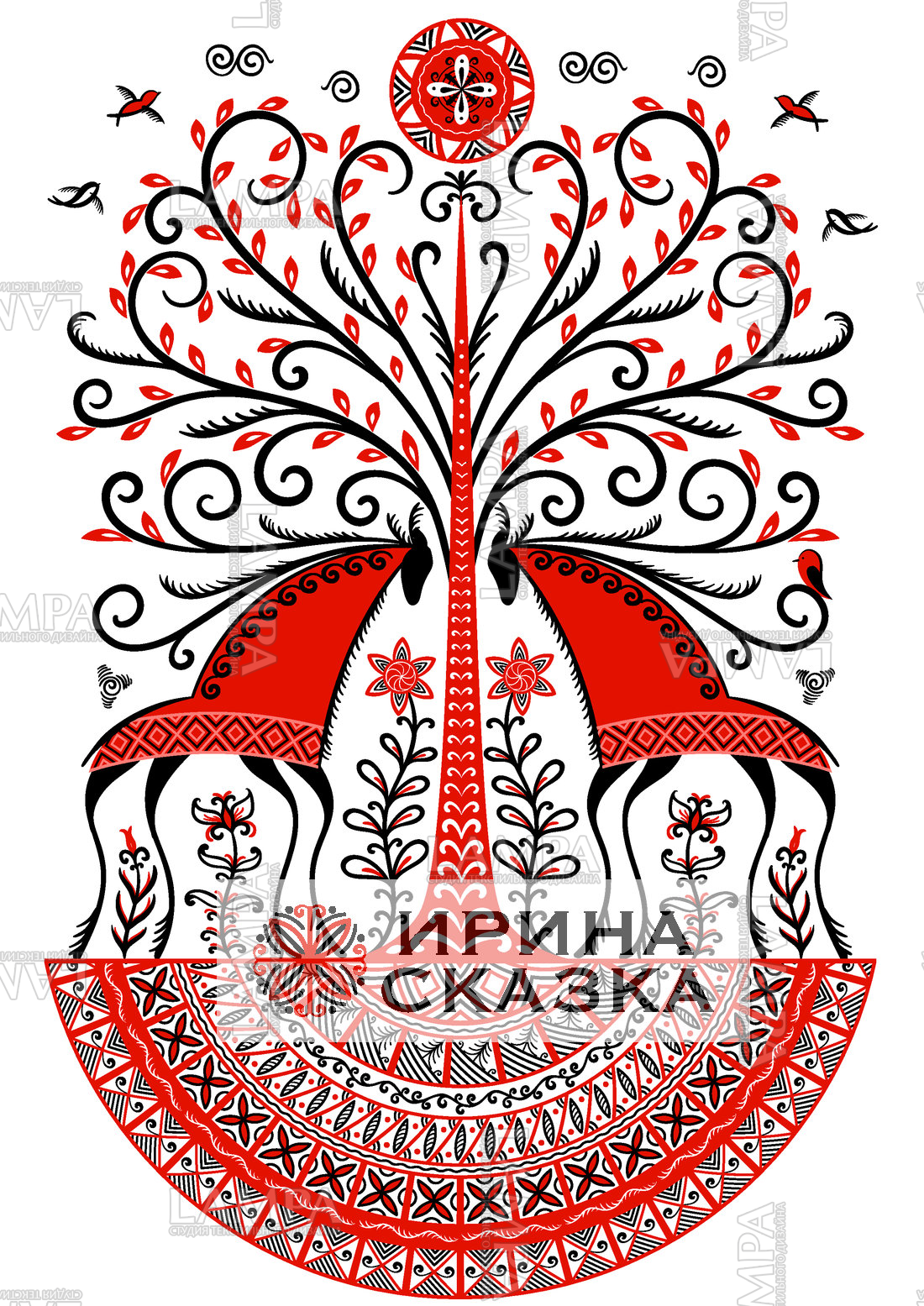 мезенская роспись, мезень, тату, русский орнамент, узор, красный, олень, дерево, сказочный, мифический, фольклорный, женский, оберег, солнце, печать на футболке