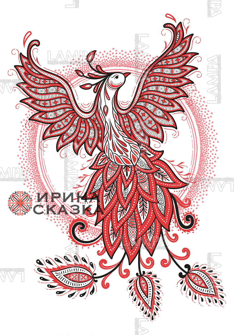 жар-птица, русские сказки, крылья, символ, мезень, тату, мезенская роспись, принт для одежды, красный, черный, русский орнамент