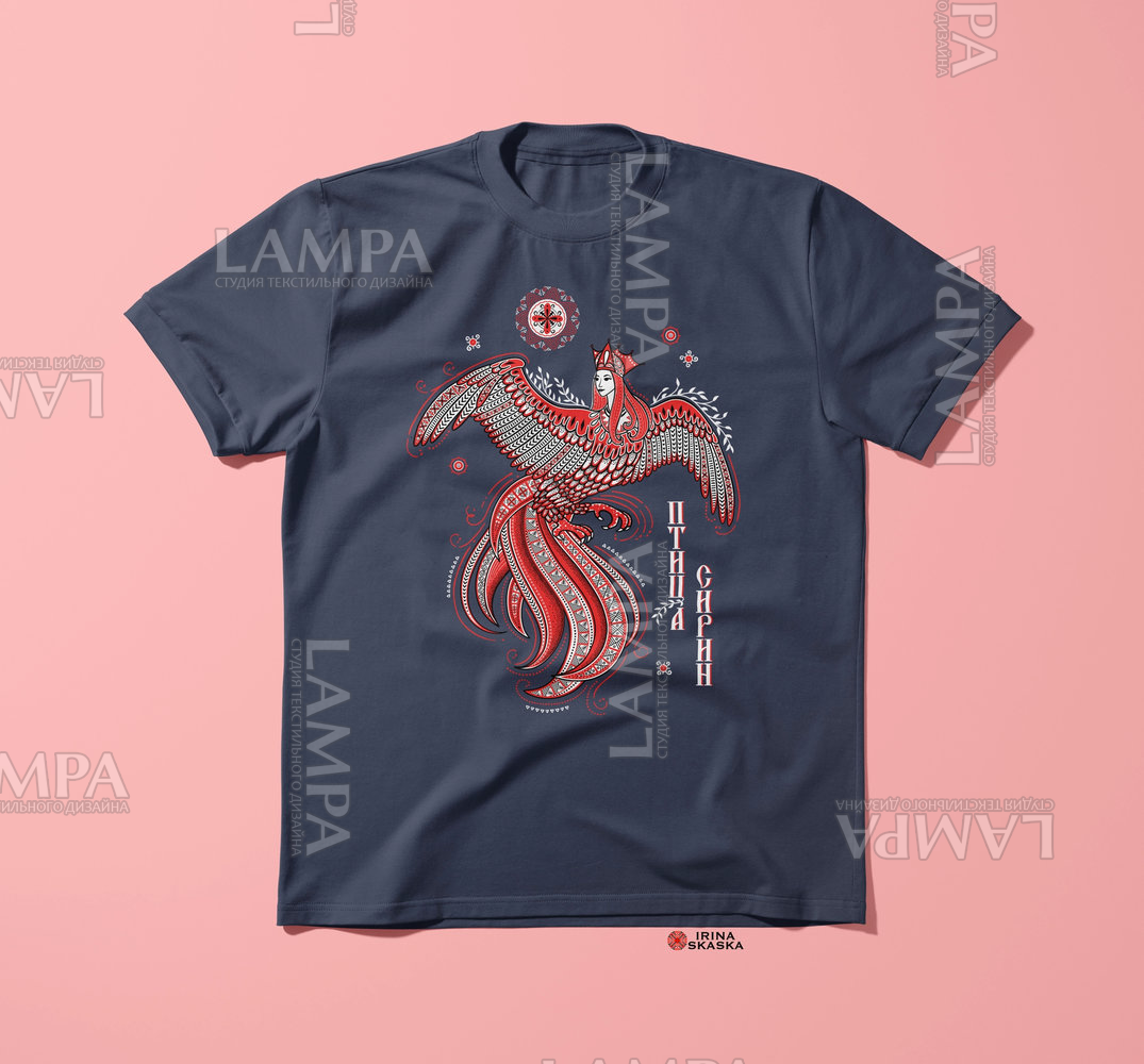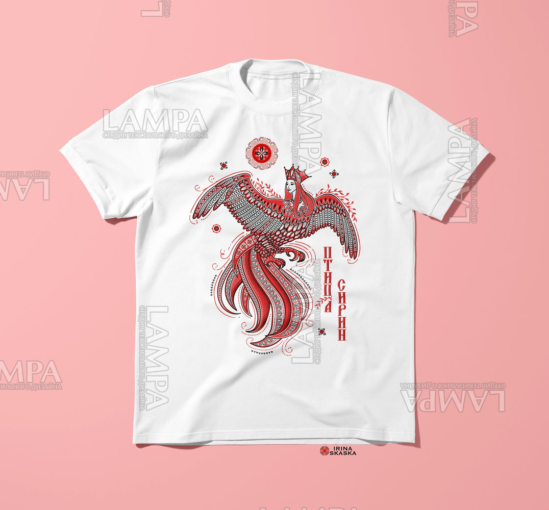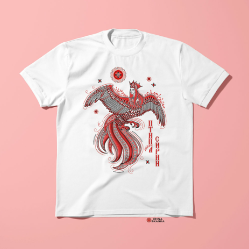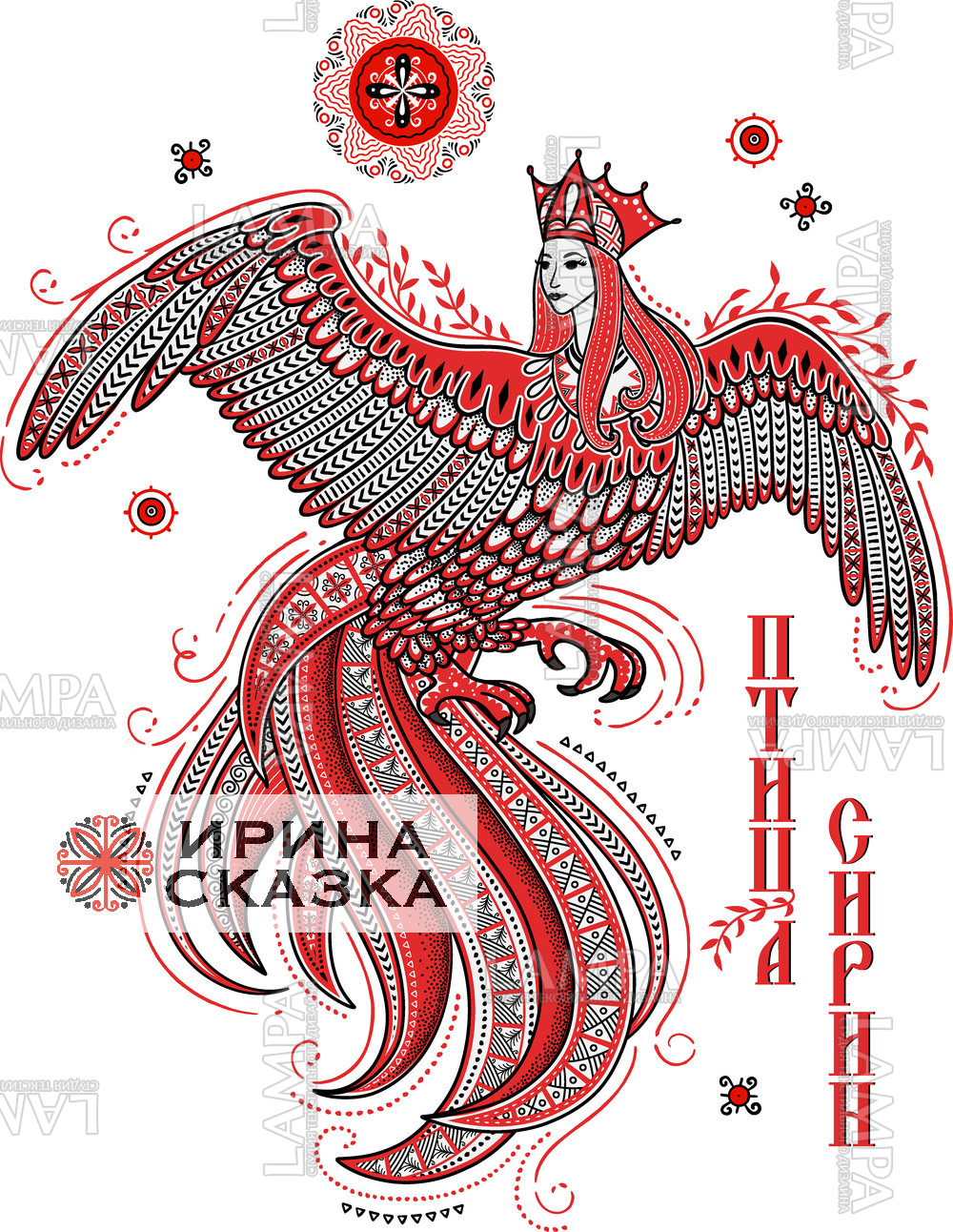 Птица Сирин, славянский, мифология, сказочный, древний, мезень, тату, мезенская роспись, русский, красный, крылья.
