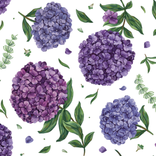 Ботанический паттерн с гортензиями на тесно-синем и белом фоне.