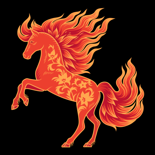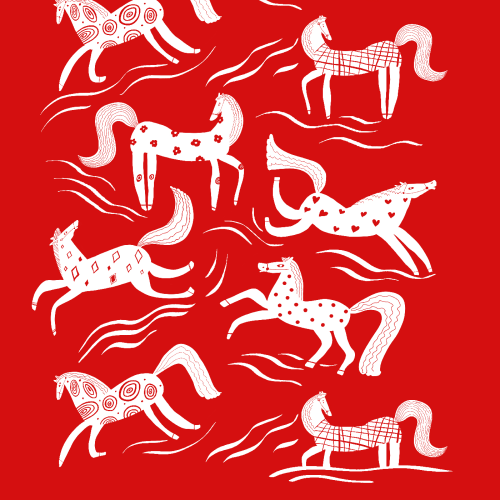 Набор иллюстраций в стиле мезенской росписи «КРАСНЫЙ КОНЬ 2026»