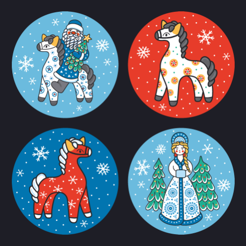 Набор Новогодних иллюстраций по мотивам дымковской игрушки