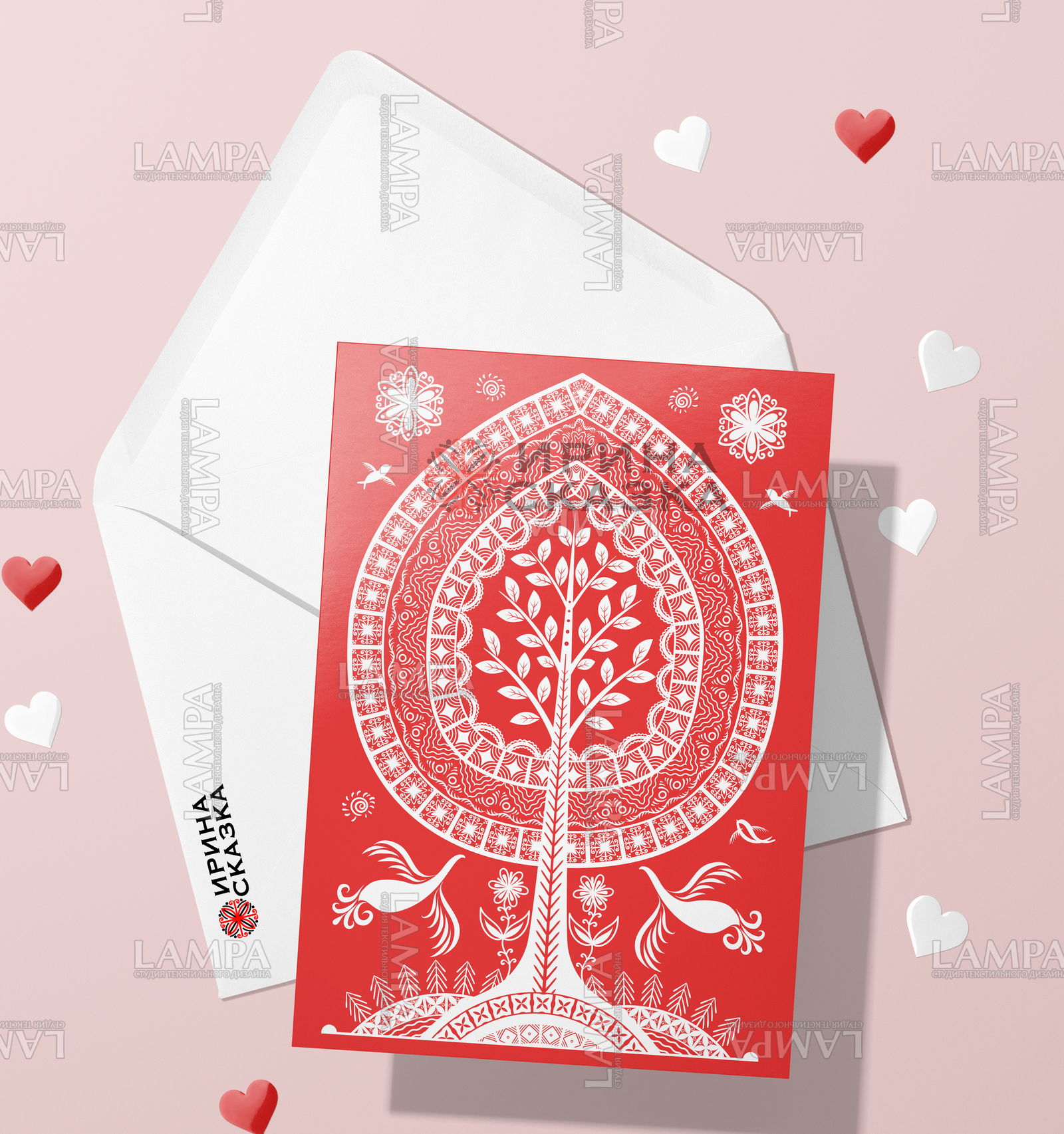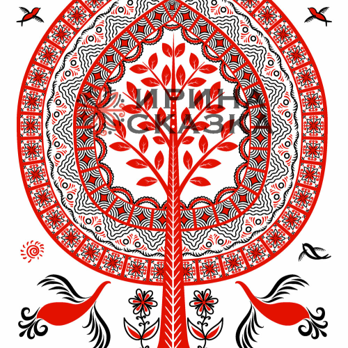 ДЕРЕВО И ПТИЦЫ В СТИЛЕ МЕЗЕНСКОЙ РОСПИСИ.