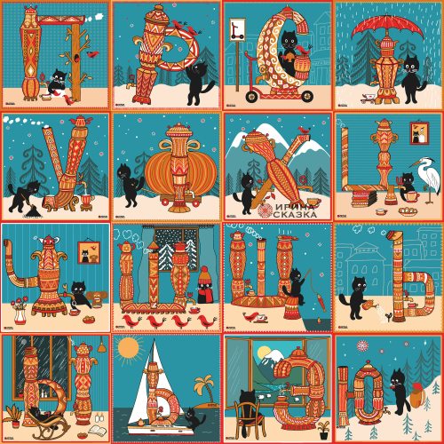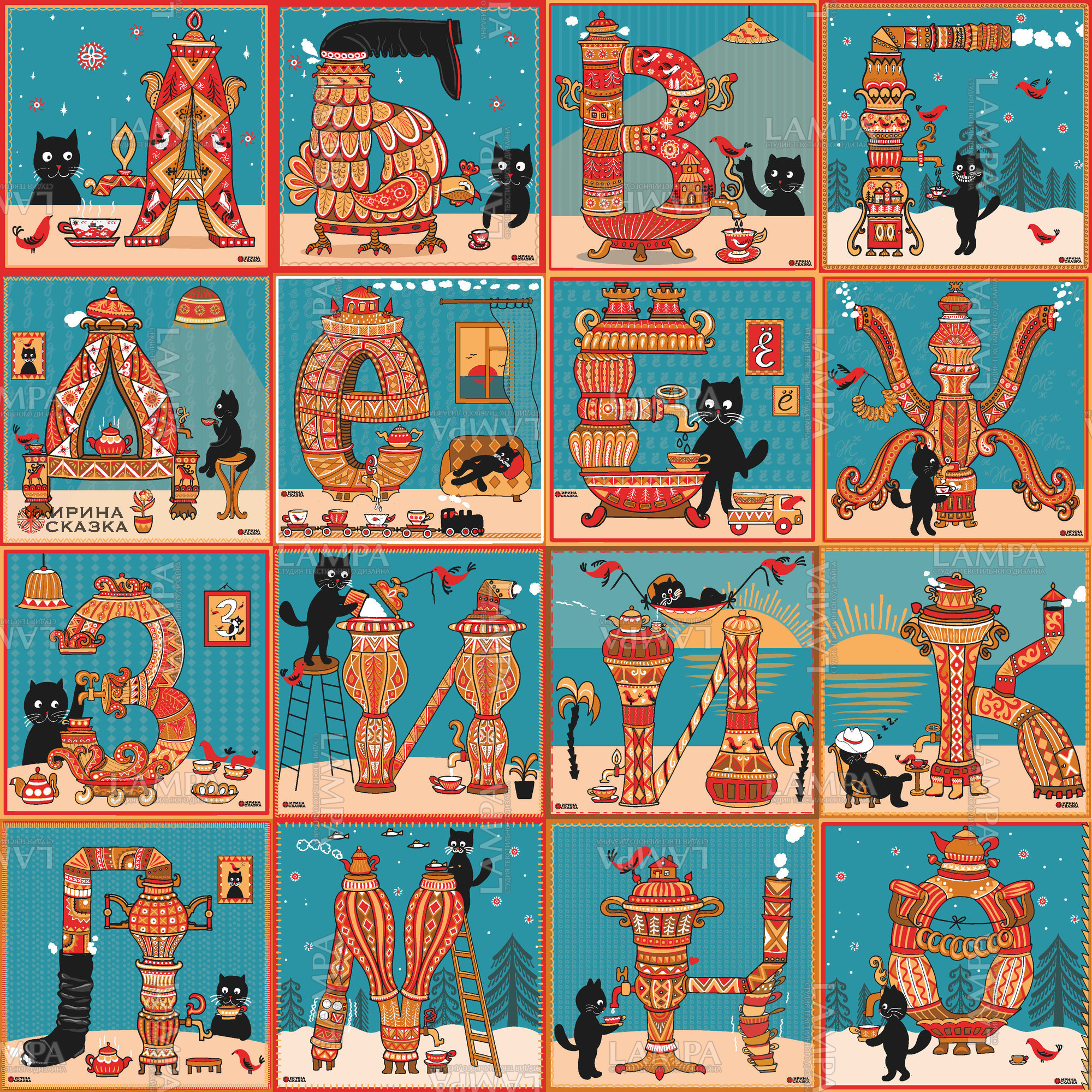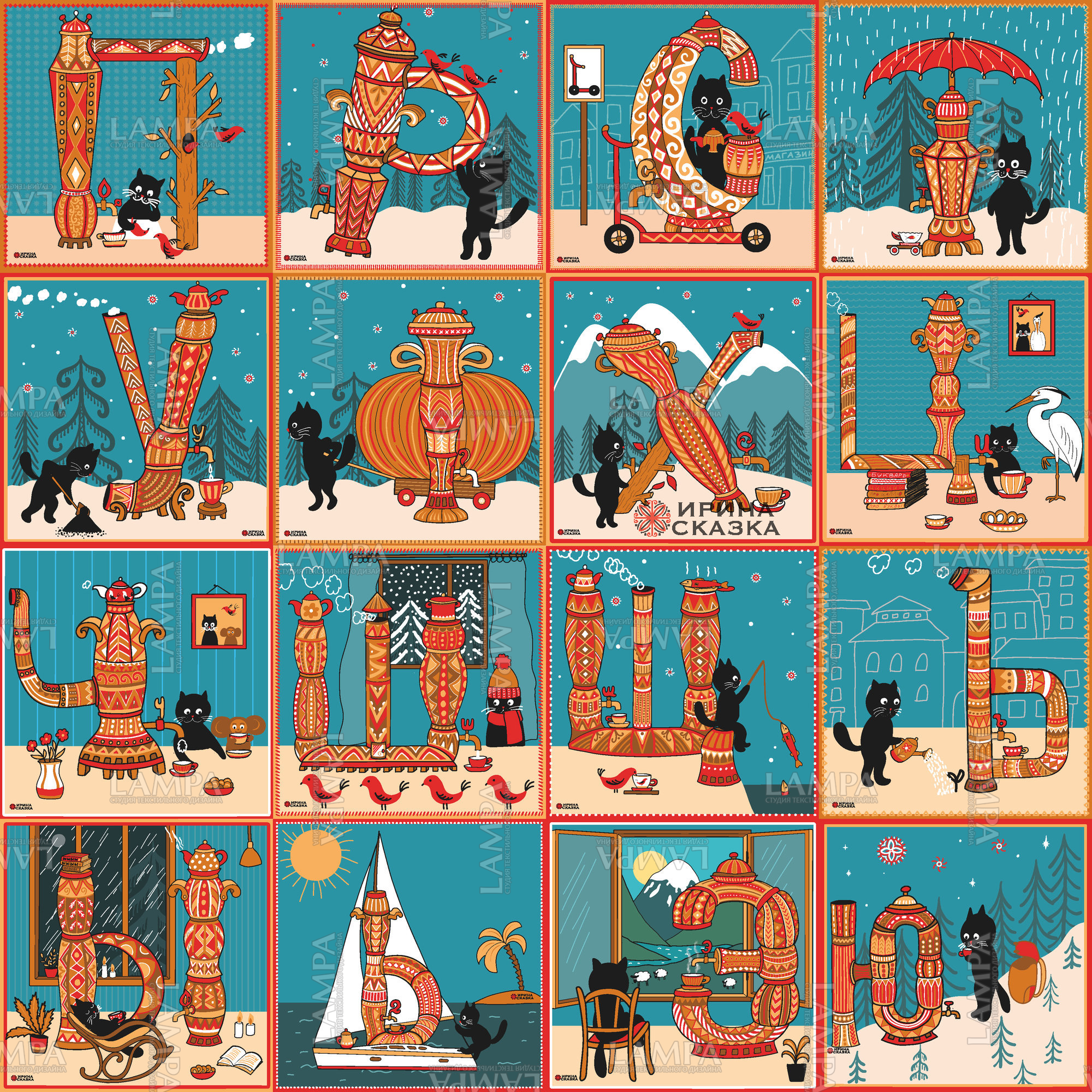 САМОВАРНЫЕ БУКВЫ. ИСТОРИИ С КОТОМ. Набор иллюстраций.