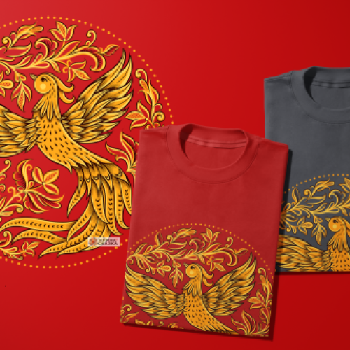 шекснинская золоченка, вологодская роспись, птица, круг
