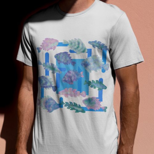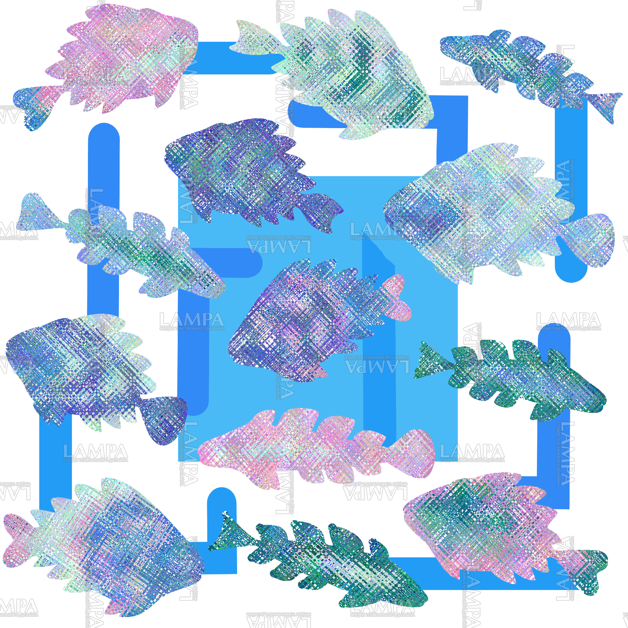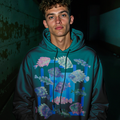 рыбки, водоворот, квадрат, символ, абстрактный, подростковый, рыбы, разноцветный, синий, морской, море, фантастические, худи, свитшот