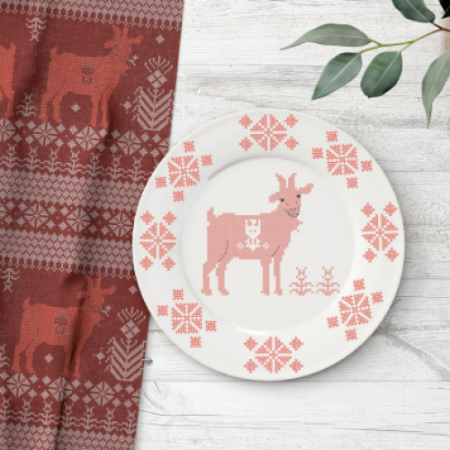 Коза, новый год , символ года 2027, огненная коза, фольклор, вышивка, имитация вышивки крестиком, фолк, русский, славянский, цветы, узор, орнамент